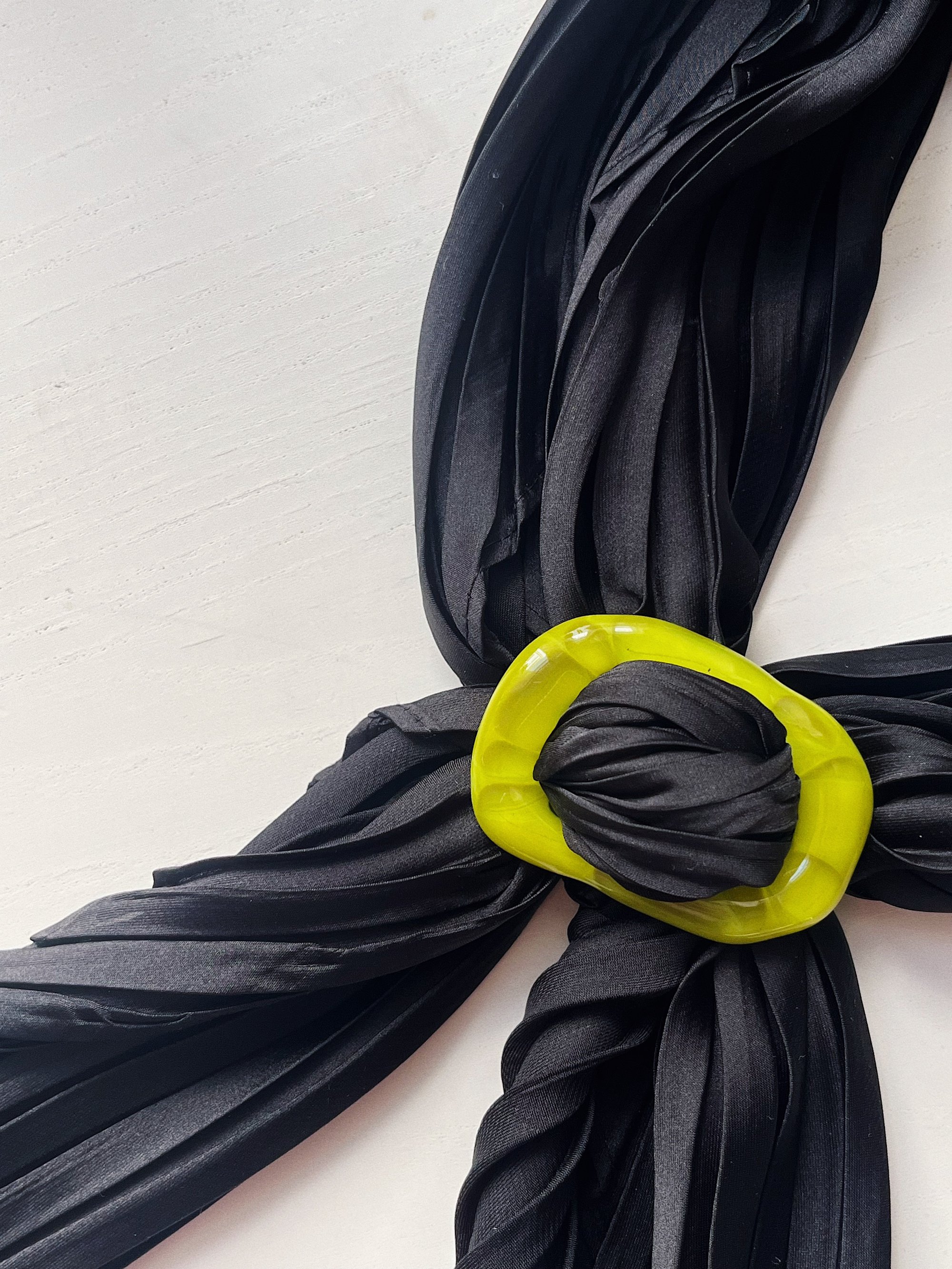 Fits best with silk scarfs (or similar materials) that have around 60x60cm.
